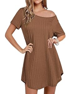 Unwind in comfort and style with the Ekouaer Tshirt Nightgowns for Women Short Sleeves Sleepshirt. Made from fashion ribbed knit stretchy fabric, this nightgown is super lightweight, comfy, and forgiving for any body type. Its high elastic and roomy design make it great for maternity and postpartum wear. The above-knee length, crew neck, and stylish irregular hem, along with short sleeves, enhance its chic appeal, suitable for all seasons. Whether you're lounging at home, working out, or attending a casual party, this oversized sleep shirt is a versatile choice. It's perfect for pairing with a soft coat and slippers at home, or with a denim jacket or lightweight cardigan for a day out with friends. Plus, it's easy to care for with machine or hand wash options.